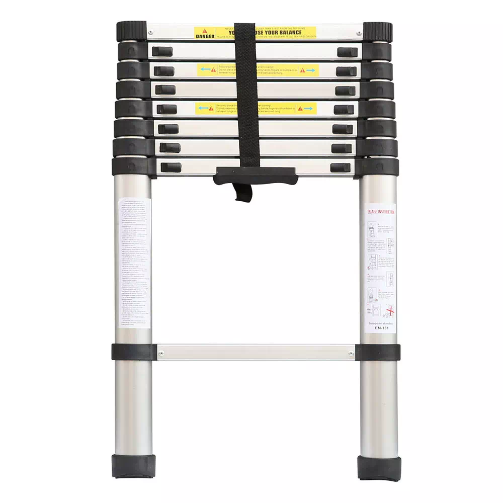 Aluminijske jednodijelne teleskopske ljestve od 9 gazišta pogodne su i praktične za rad na visini za jednostavno korištenje ljestava zbog praktičnog izvlačenja koje je moguće uz lagani pritisak na gumb koji se nalazi na svakom gazištu, izuzetno su praktične za skladištenje jer zauzimaju vrlo malo prostora.