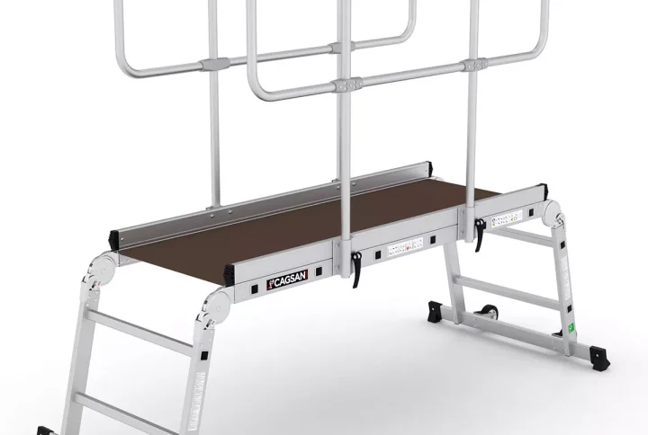 Podešavanje visine platforme teleskopskim sustavom. Obje noge su teleskopski podesive za siguran rad na različitim razinama poda.